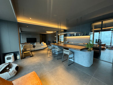 屋主不只追求空間,更重視「情境」。透過HomeKit智慧家居整合全屋調光調色燈具、智慧窗簾與7吋智能中控面板,打造如電影般流動的生活場景。